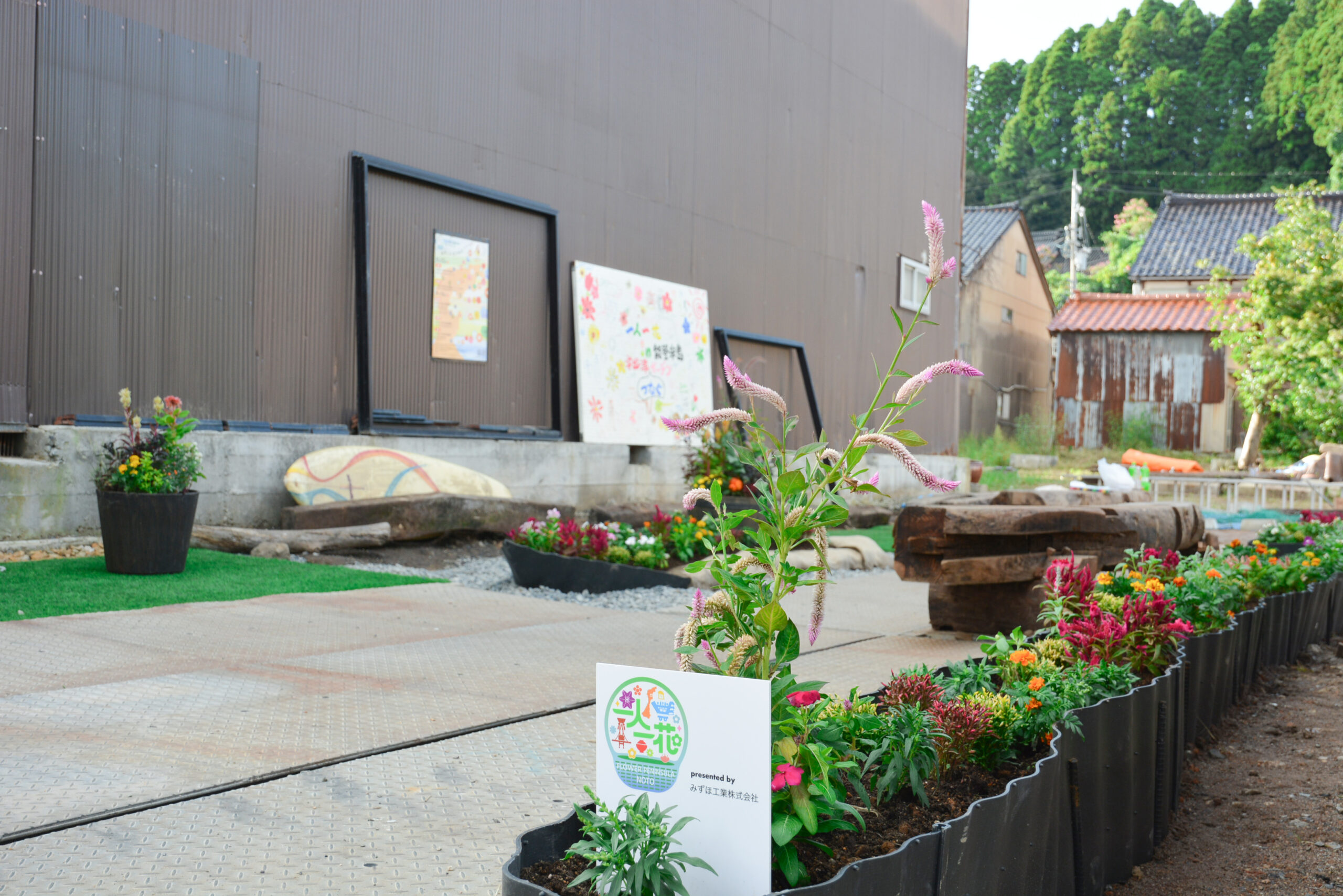 能登町宇出津の公費解体跡地にガーデンを整備しました。敷地は港の程近くの住宅地の中です。船出をイメージして、船型の花壇を作りました。